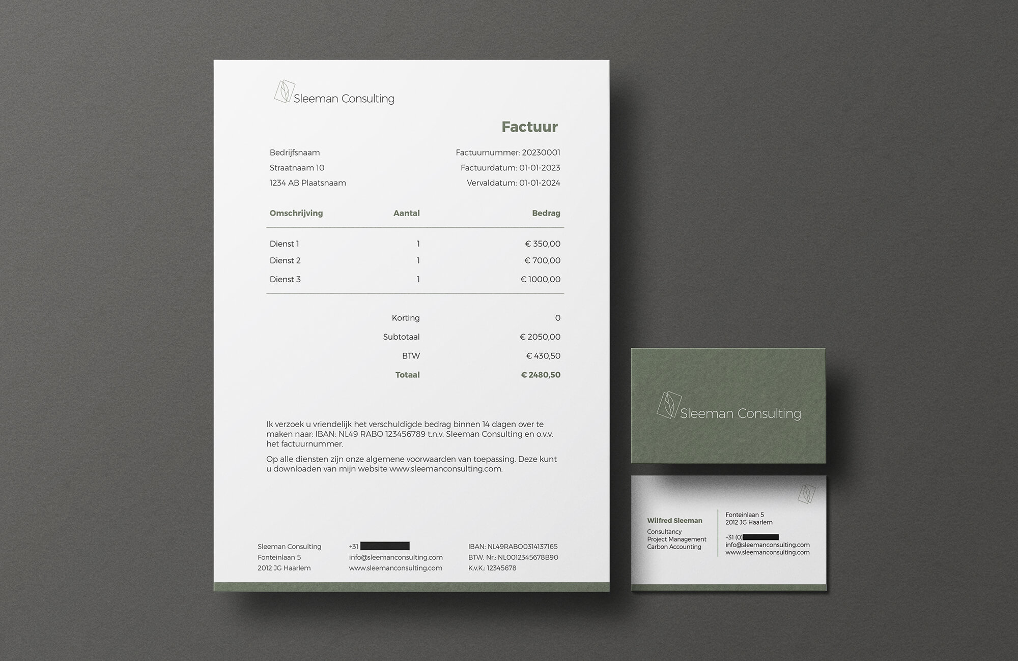 Een complete redesign van een het logo, huisstijl en website voor Sleeman Consulting waarbij natuur, milieu en duurzaam centraal stonden.