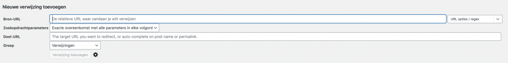 Wanneer je de premium versie van de SEO plugin Yoast hebt, dan worden redirects automatisch ingesteld. Geen Yoast Premium? Dan zul je zelf moeten zorgen voor 301 redirects. Gelukkig is er nog wel een plugin die dat allemaal net wat makkelijker maakt. Redirection is een gratis plugin waarbij je 301 redirects in kunt stellen. Het werkt heel simpel. Je geeft bij bron URL geef je aan voor welke url je een redirect wilt aanmaken. Bij de doel url geef de url aan waarnaar verwezen gaat worden. Klik op de knop ‘Verwijzing toevoegen’ en that’s it.